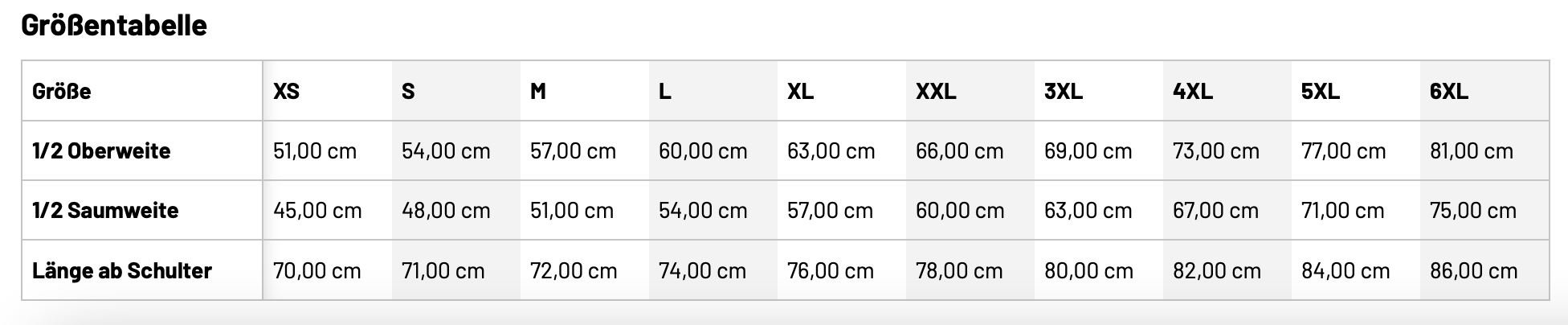 Unisexgrößen: