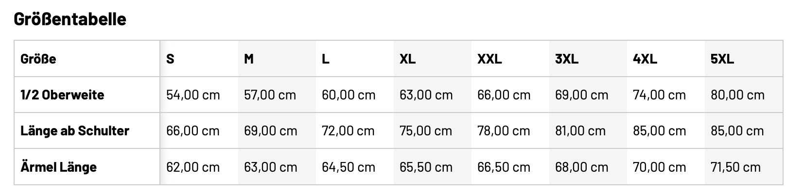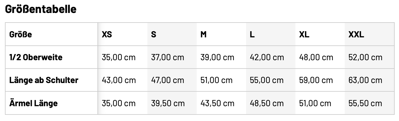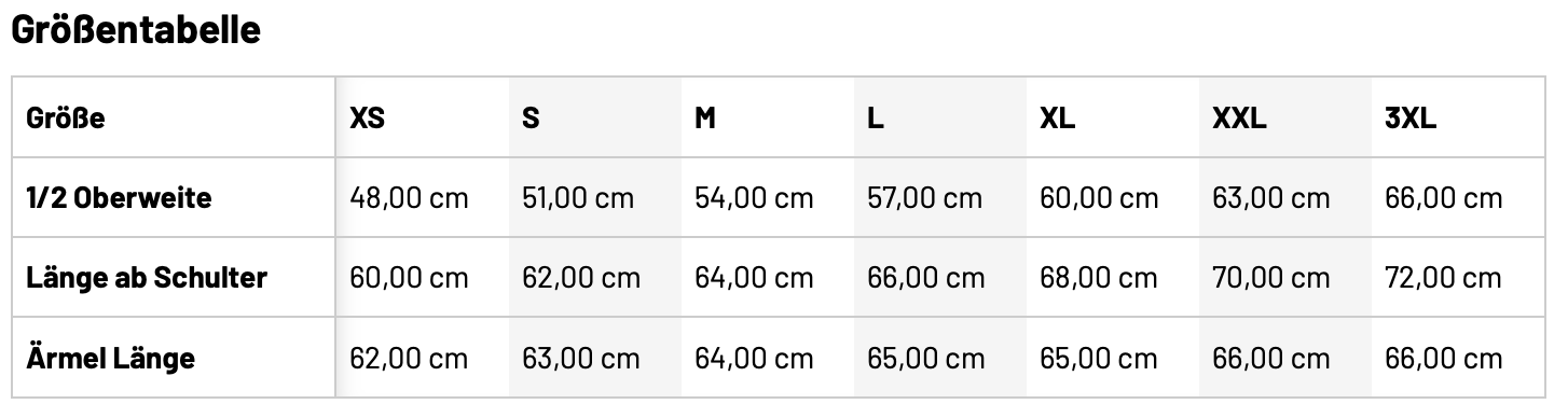 Größentabelle Herren